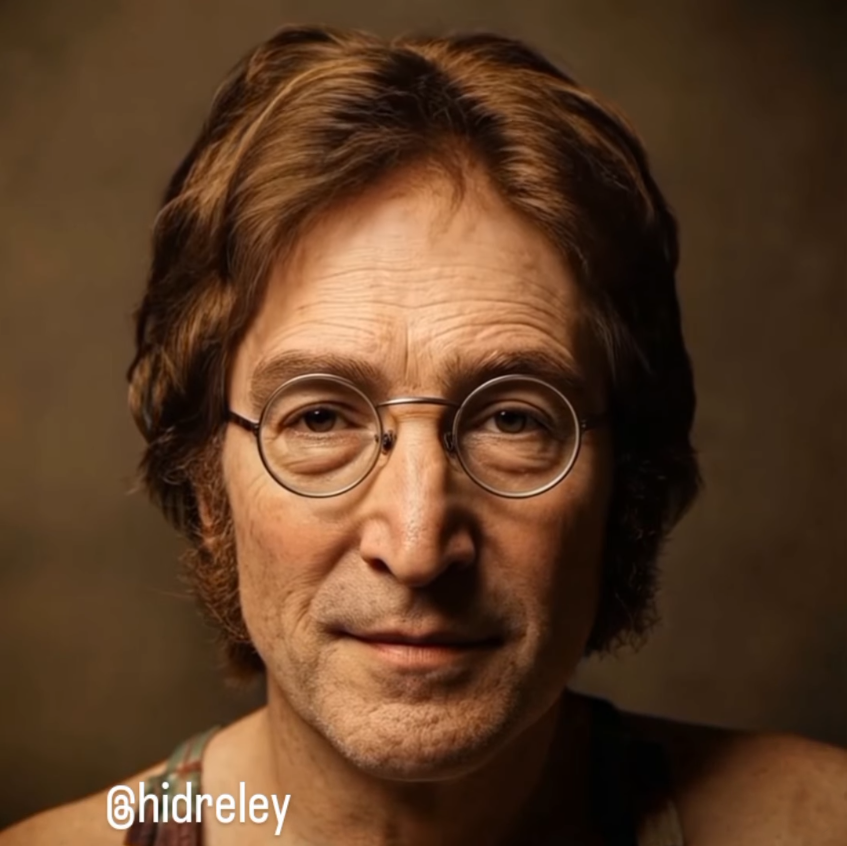 Также и Джон Леннон — не застывшая икона, а живой человек, которого Идрели искусственно «состаривает», позволяя нам увидеть, как он мог бы выглядеть сегодня, если бы история сложилась иначе.