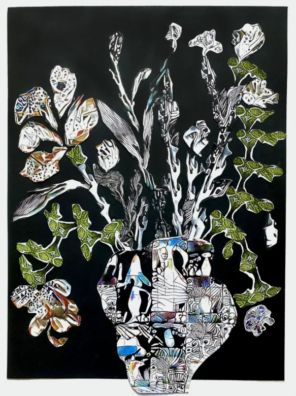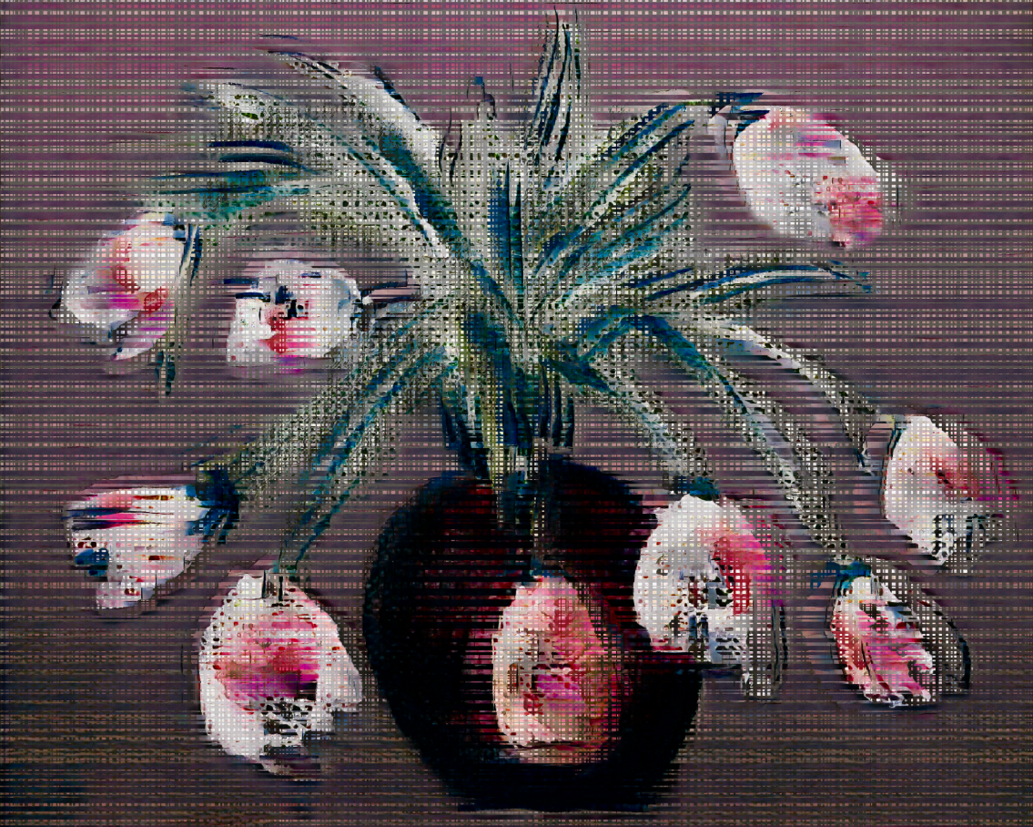 Так возникает то, что Сарин называет #neuralBricolage — нейронный бриколаж: сборка новых образов из фрагментов личной визуальной памяти художника. Цветы, еда, бутылки, вазы, бытовые объекты превращаются в абстрактные, но эмоционально узнаваемые формы.